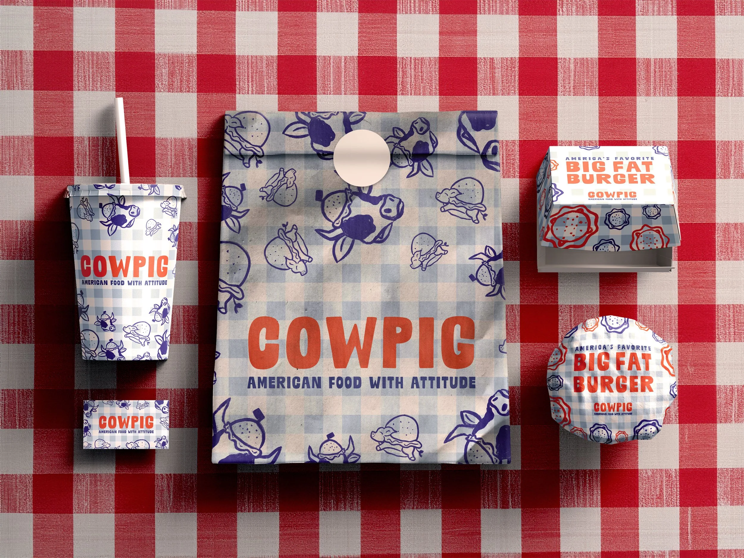 COWPIG is a restaurant that is nothing short of an homage to classic American culture--barbecues on family picnic tables and casual conversation. Brand identity was developed along with packaging solutions and a website.
