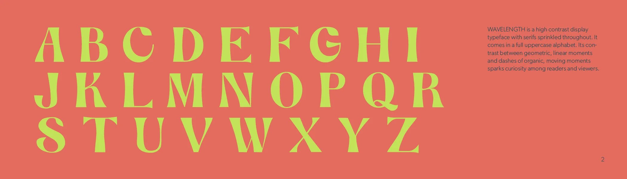 Wavelength is a typeface completed in December 2024. It was inspired by bold, clean typefaces of the same nature, but was approached with an emphasis on legibility.